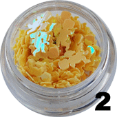 Aniołki to oryginalny sposób na odmienny, uroczy manicure. Przeznaczone do zatapiania w żel, akryl, hybrydę. Doskonałe również do tworzenia dekoracji oraz prac plastycznych itd. Opakowane w woreczki strunowe. Kolor żółty opalizujący. Waga: 1 g.