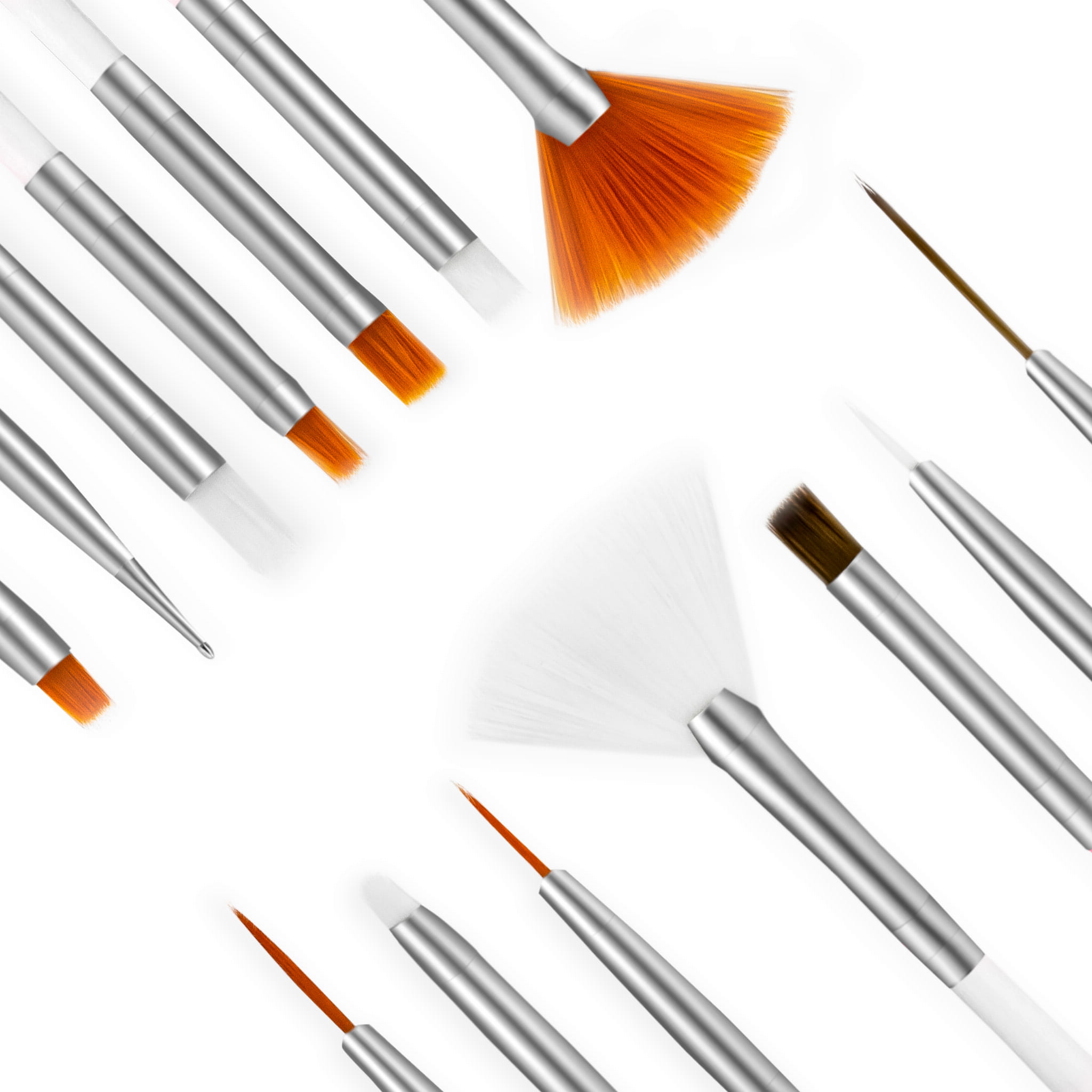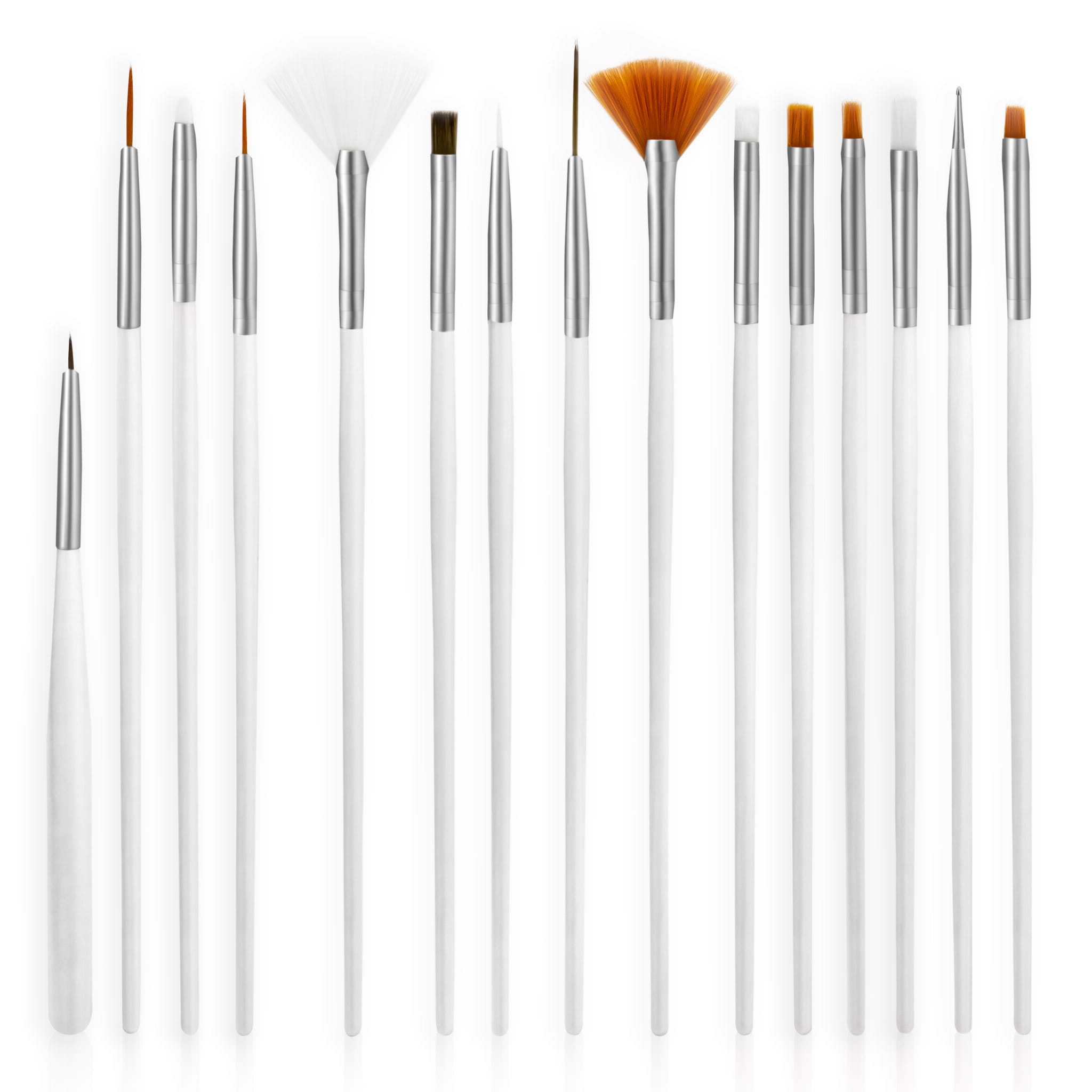 Wielozadaniowy zestaw składa się z 15 pędzelków z drewnianą, białą rączką. Zestaw doskonały jest do zdobień, żelu, hybryd, farbek czy french manicure.