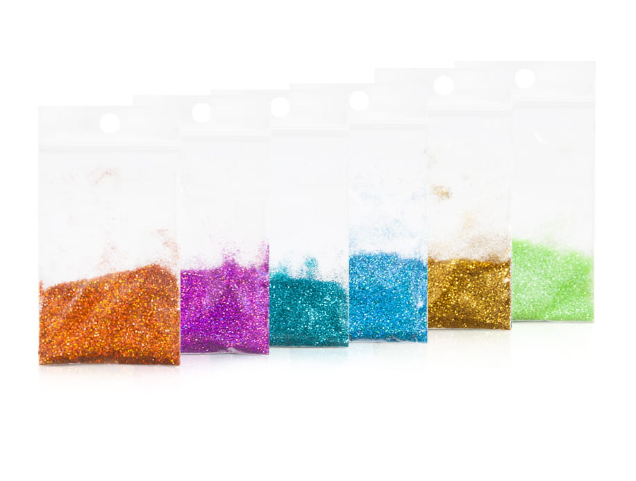 Brokat to doskonała ozdoba do zatapiania w żelu lub akrylu. Również do stylizacji paznokci przy pomocy lakieru lub utwardzacza. Umożliwia tworzenie zjawiskowych wzorków. Mieniące się i połyskujace brokatem paznokcie to propozycja dla fantazyjnych stylizacji na różne okazje. Magiczne zdobienia wykonasz przy jego użyciu także na ciele lub włosach. Opakowany jest w saszetki w zestawie. W komplecie są 6 saszetki, każda z innym kolorem brokatu (kolory do wyboru). Pojemność jednej saszetki to 2 ml.