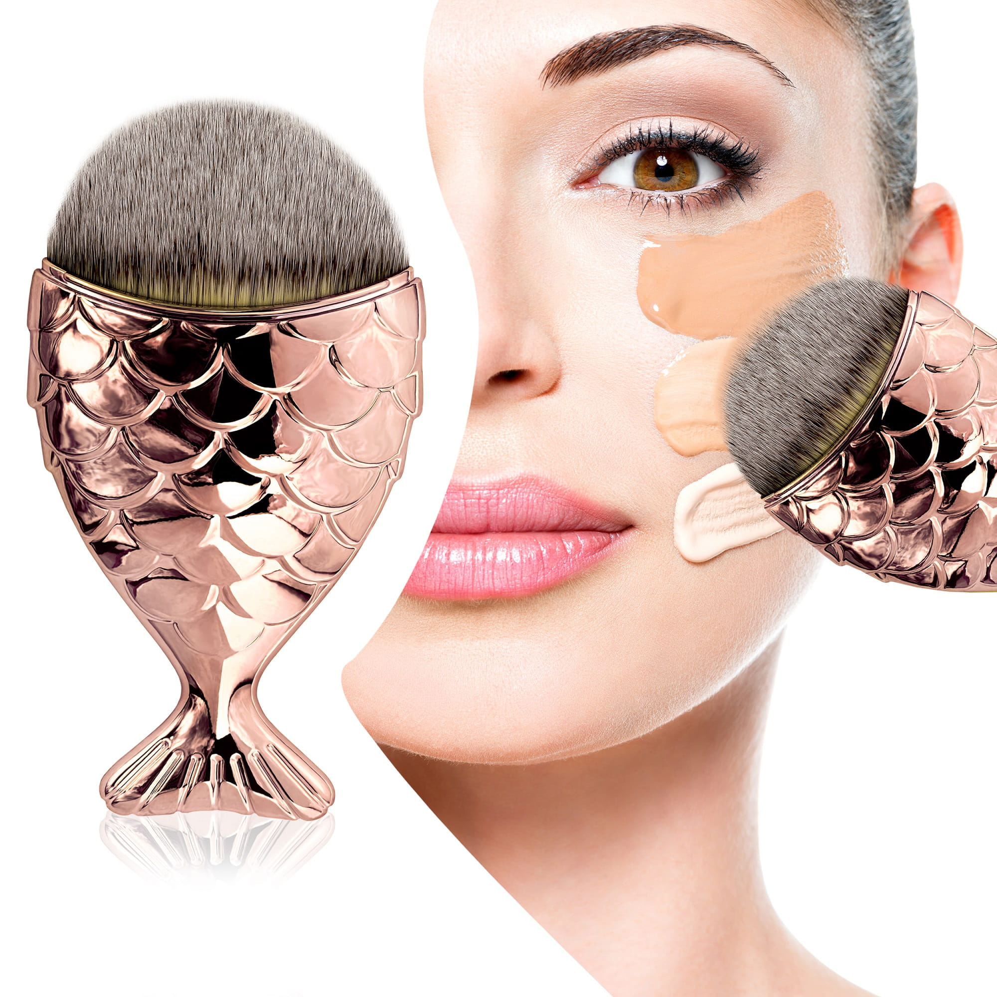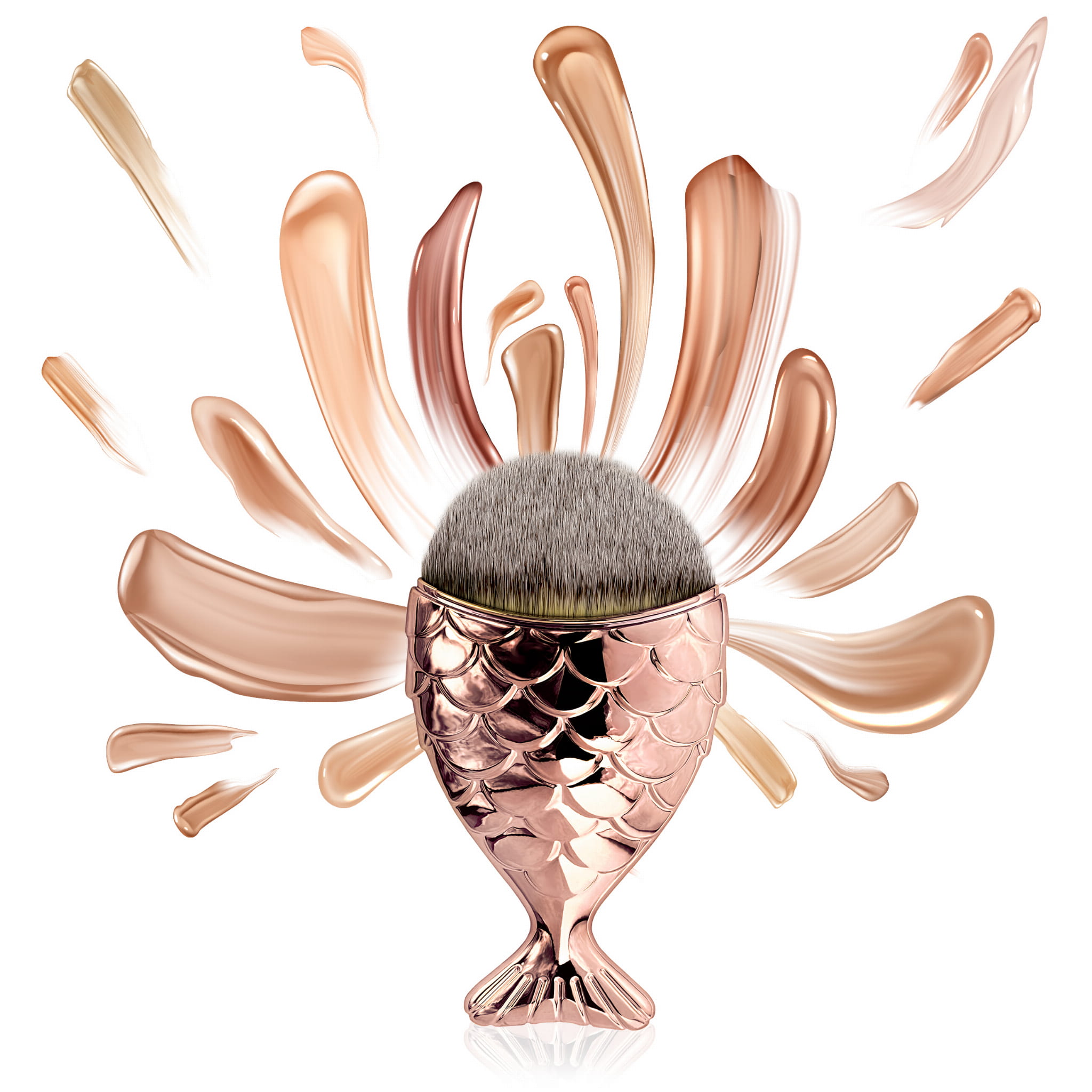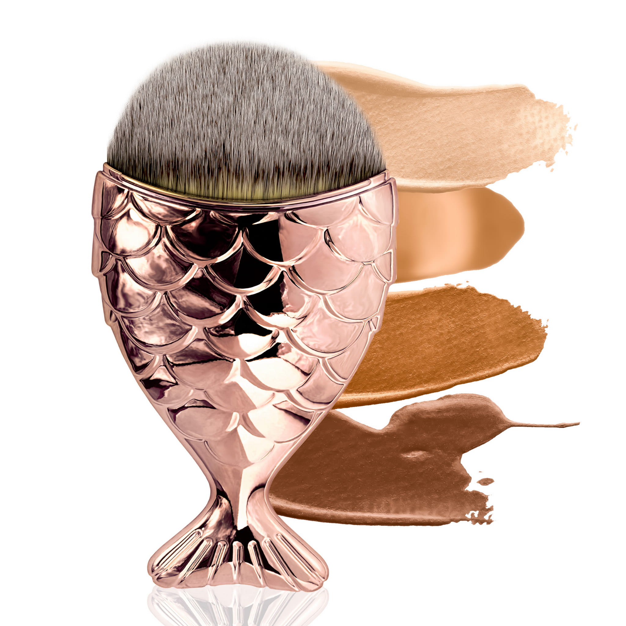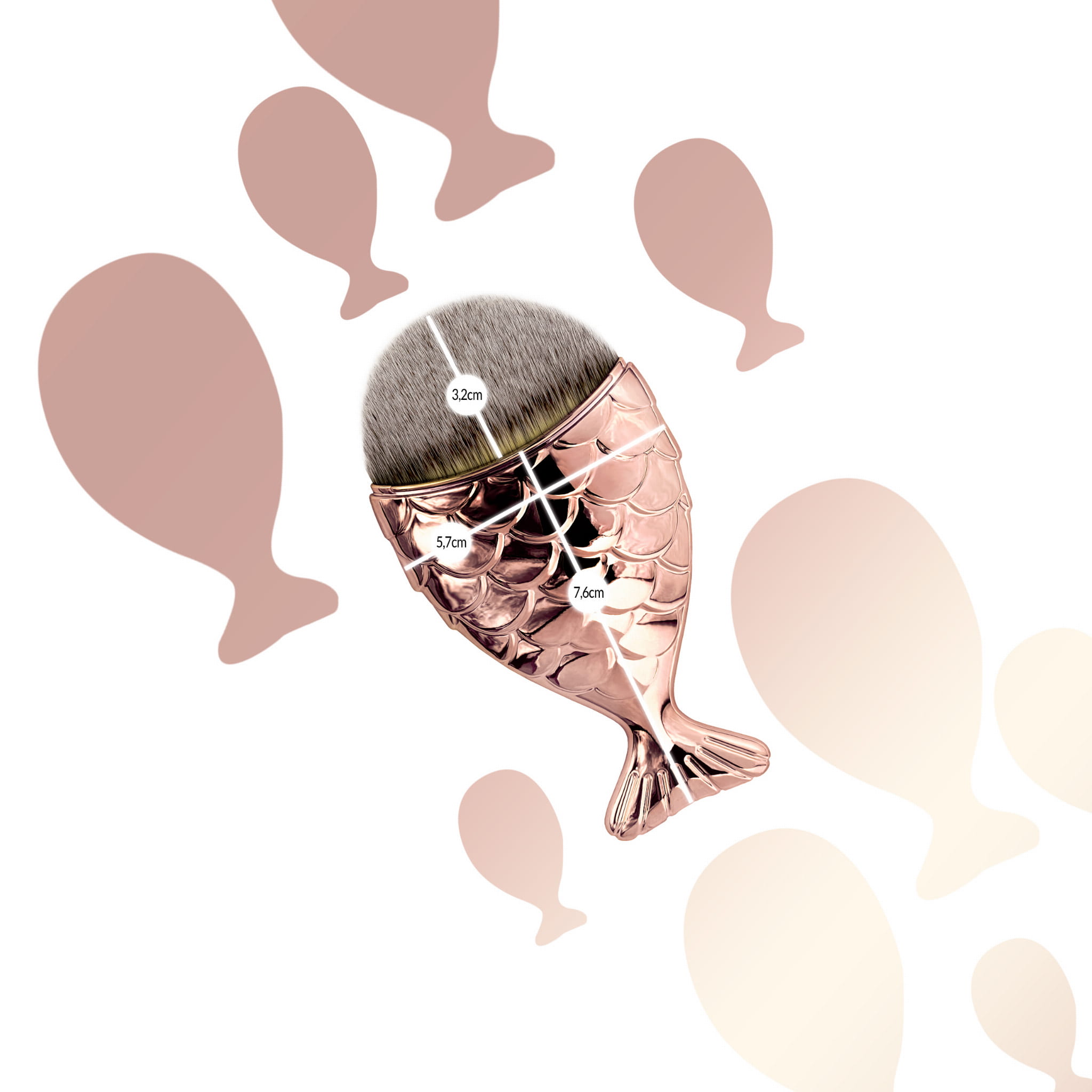 Duży pędzelek do podkładu "rybka" różowo-złota
