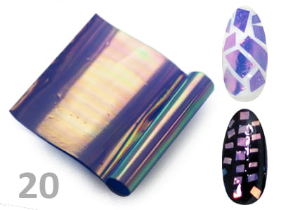 Opalizująca folia, odbijająca światło, dzięki której stworzysz wyjątkowe manicure. W zależności od koloru bazowego możliwe jest uzyskanie różnych efektów. Na jasnych barwach folia ma delikatny fioletowy odcień, natomiast przy ciemnym podkładzie dostaje złoto- fioletowych refleksów.