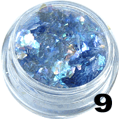 Transparentna, odbijająca światło folia w niebieskim odcieniu, dzięki której uzyskasz wyjątkowy efekt. Jest drobno pocięta i po nałożeniu na paznokcie przypomina stłuczone szkło, rozbite lustro. Dodatkowo cudownie mieni się w promieniach słonecznych dodając niezwykłego blasku stylizacji. W zależności od użytego koloru bazowego możliwe jest uzyskanie delikatnego jak i bardziej wyrazistego zdobienia.