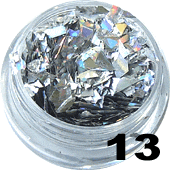 Odbijająca światło folia w kolorze srebrnym, dzięki której uzyskasz wyjątkowy efekt. Jest drobno pocięta i po nałożeniu na paznokcie przypomina stłuczone szkło, rozbite lustro. Dodatkowo cudownie mieni się w promieniach słonecznych na wszystkie kolory tęczy dodając niezwykłego blasku stylizacji.