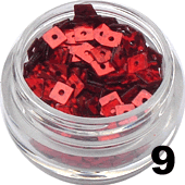9.Kwadraty z dziurką do zdobienia paznokci czerwone hologram 100 szt.