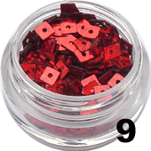 9.Kwadraty z dziurką do zdobienia paznokci czerwone hologram 5 ml