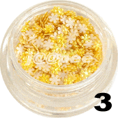 Kolorowe mini kwiatuszki 3D do zdobień i stylizacji paznokci z tkaniny perłowej. Idealne do hybrydy, żelu i akrylu. Opakowane są w woreczki strunowe. Kolor: słoneczny. Ilość: 20 szt.