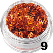 Kolorowe kwiatuszki do zdobień i stylizacji paznokci. Idealne do hybrydy, żelu, akrylu oraz naturalnych paznokci. Opakowane są w zakręcane pojemniczki. Kolor: miedziany. Ilość: 5 ml.