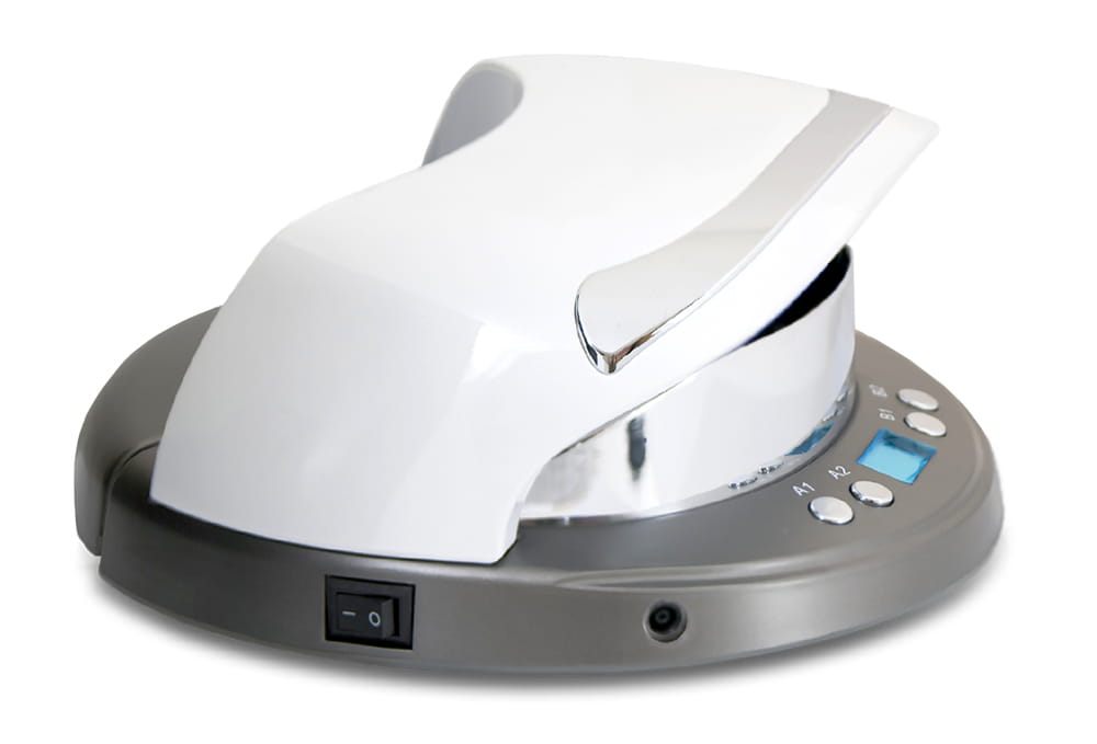Niezwykle funkcjonalna lampa zbudowana z myślą o profesjonalnych stylistkach paznokci. Zastosowane w niej najnowsze technologie zasadniczo ułatwią i przyspieszą pracę w gabinecie kosmetycznym. W wyniku użycia dwóch fal świetlnych 365 i 405 nm lampa utwardzi każdy lakier hybrydowy i żel. Posiada boczne rozłożenie diod pozwalające na równomierne utwardzenie produktu na każdym palcu. Nie jest konieczne utwardzanie kciuka osobno co również przyspieszy czas wykonywania manicure. Lampa jest ekologiczna i energooszczędna. Posiada 2 tryby pracy ekonomiczny i standardowy. Tryb Eko posiada 2 czasy A1-5s i B1-10s. Cechą charakterystyczną tego trybu są mrugające żarówki. W ten sposób proces polimeryzacji produktu zachodzi o wiele wolniej niż w przypadku naświetlania ciągłego i jest polecany szczególnie do budowania i zaciskania paznokci żelem, utwardzania hybrydy czy do problematycznych płytek. Czas standardowy A2- 30s i B2- 60s to wystarczający czas by lampa utwardziła akrylożel czy tradycyjny żel zarówno Led jak i UV. Wbudowany wiatraczek zapewni dodatkowo komfort i pełen profesjonalizm. Klientka będzie zachwycona, gdy poczuje delikatny, chłodny powiew na swoich dłoniach.
