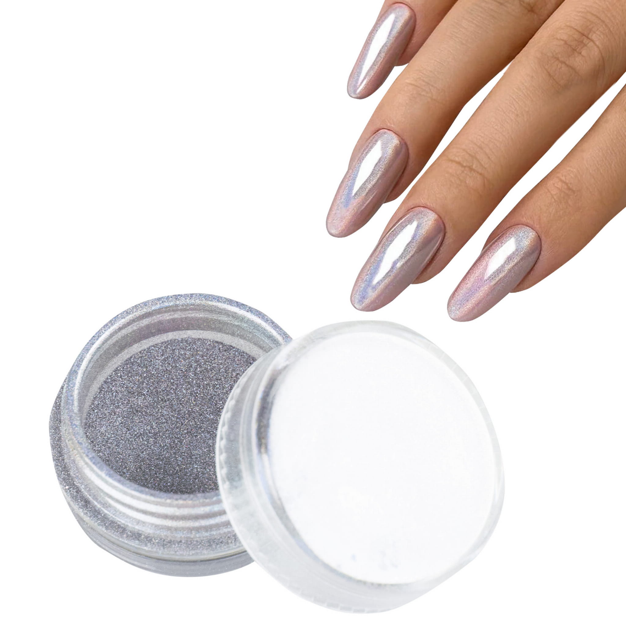 Pyłek do zdobienia paznokci pozostawia efekt błyszczącej, holograficznej, lustrzanej tafli, mieniącej się kolorami tęczy. Bardzo wydajny w użyciu. Prosty w apliakacji, najlepiej przy pomocy aplikatora do cieni. W zależności od koloru podkładu manicure będzie jaśniejszy, a położony na czarny lakier będzie ciemno-srebrny. Aplikować na utwardzony lakier hybrydowy lub żel (po nałożeniu topu i przemyciu), delikatnie wklepując do momentu uzyskania jednolitej, gładkiej tafli. Następnie zabezpieczyć topem. Tworzy niepowtarzalny, magiczny wygląd, pasujący do wielu stylizacji. Pojemność: 0,5 g (słoiczek).