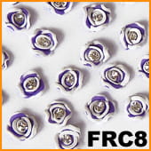 Piękna róża wykonana z masy Fimo, która wyjątkowo ozdobi manicure. Dwukolorowe granatowo- białe płatki i znajdująca się w środku błyszcząca, srebrna cyrkonia dodają zdobieniu niesamowitego uroku. Ozdoba szczególnie sprawdzi się w wieczorowych stylizacjach. Od spodu jest płaska by łatwiej było ją przymocować. Jest bardzo starannie wykonana i dodaje wdzięku i wytworności stylizacji.