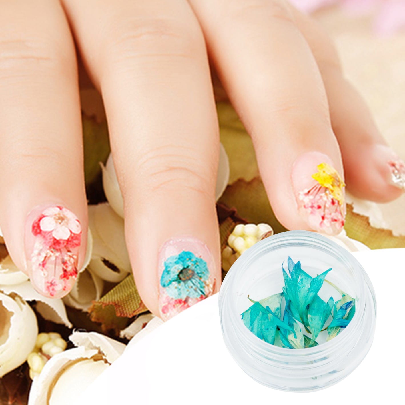 Ozdoba do paznokci Suszone kwiatki błękitne w słoiczku 5ml - 47
