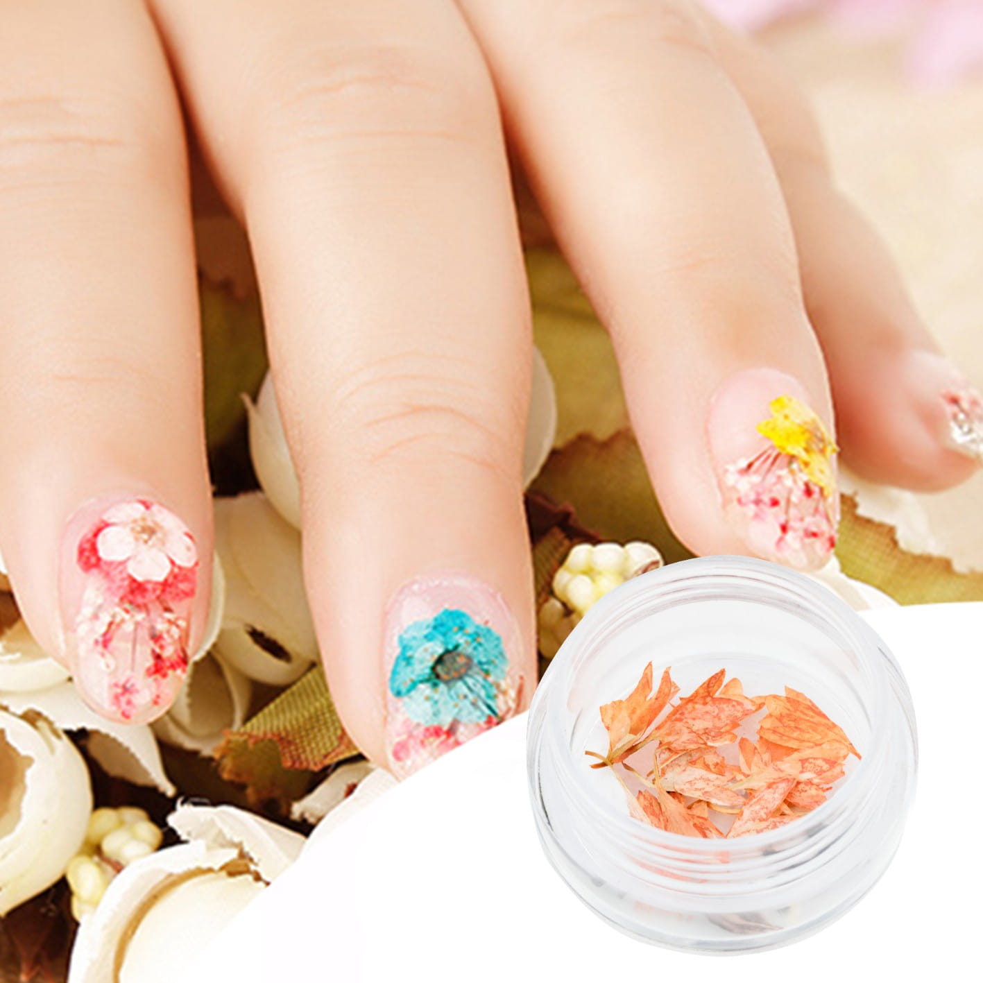 Ozdoba do paznokci Suszone kwiatki pomarańczowe w słoiczku- 50