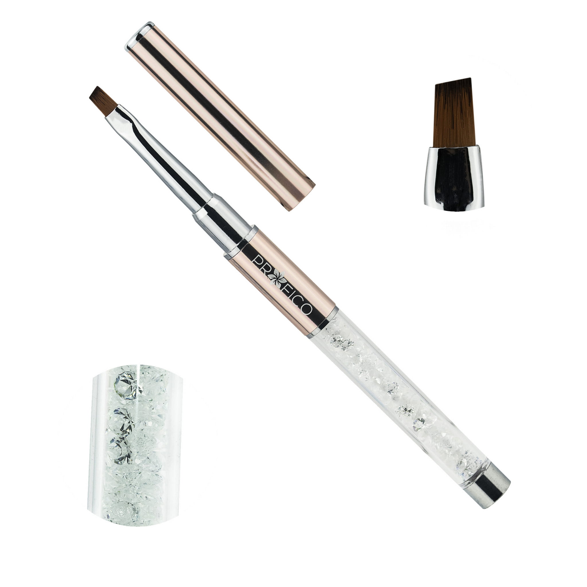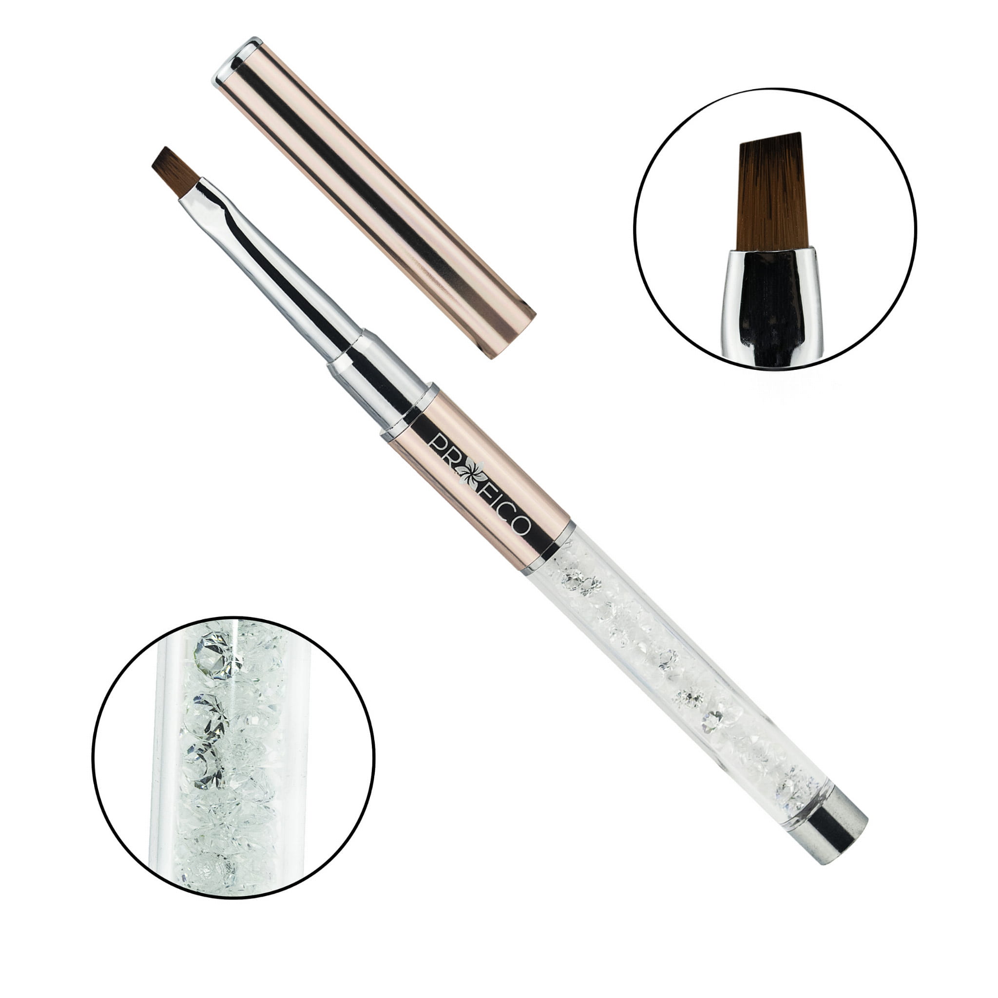Wyprofilowana, lekka rączka doskonale leży i nie obciąża dłoni nawet przy dłuższej pracy. Dodatkowo jej wnętrze wypełniają piękne kryształki, a kolor różowego złota dodaje jej uroku. Pędzelek będzie nie tylko narzędziem pracy, ale i ozdobnym dodatkiem.