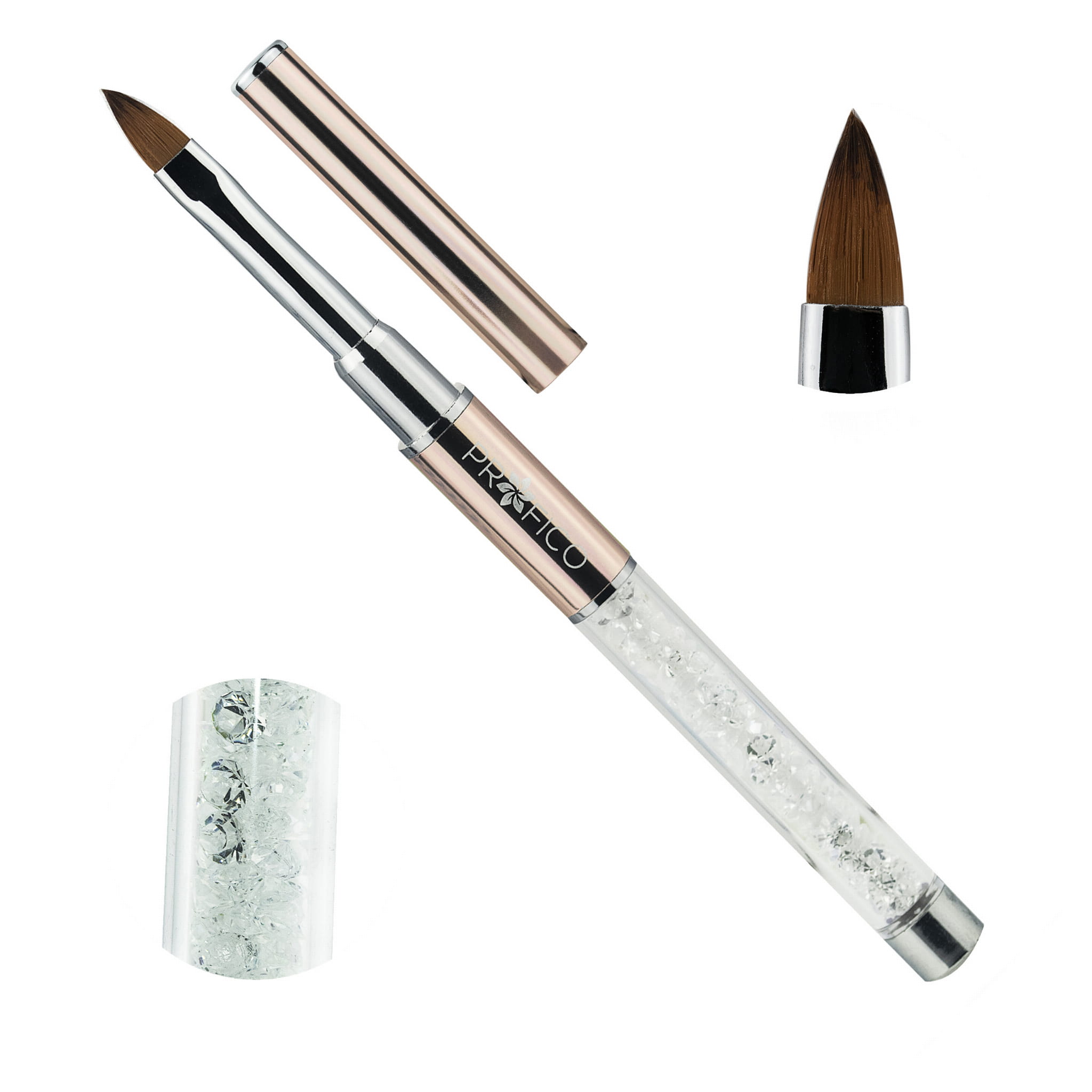Wyprofilowana, lekka rączka doskonale leży i nie obciąża dłoni nawet przy dłuższej pracy. Dodatkowo jej wnętrze wypełniają piękne kryształki, a kolor różowego złota dodaje jej uroku. Pędzelek będzie nie tylko narzędziem pracy, ale i ozdobnym dodatkiem.