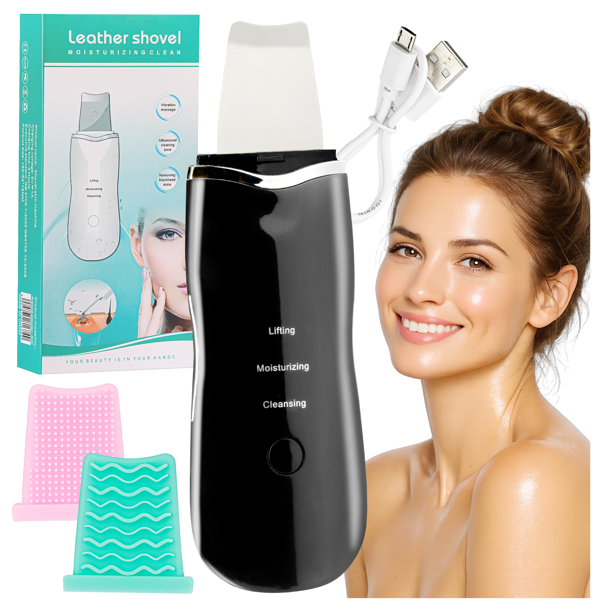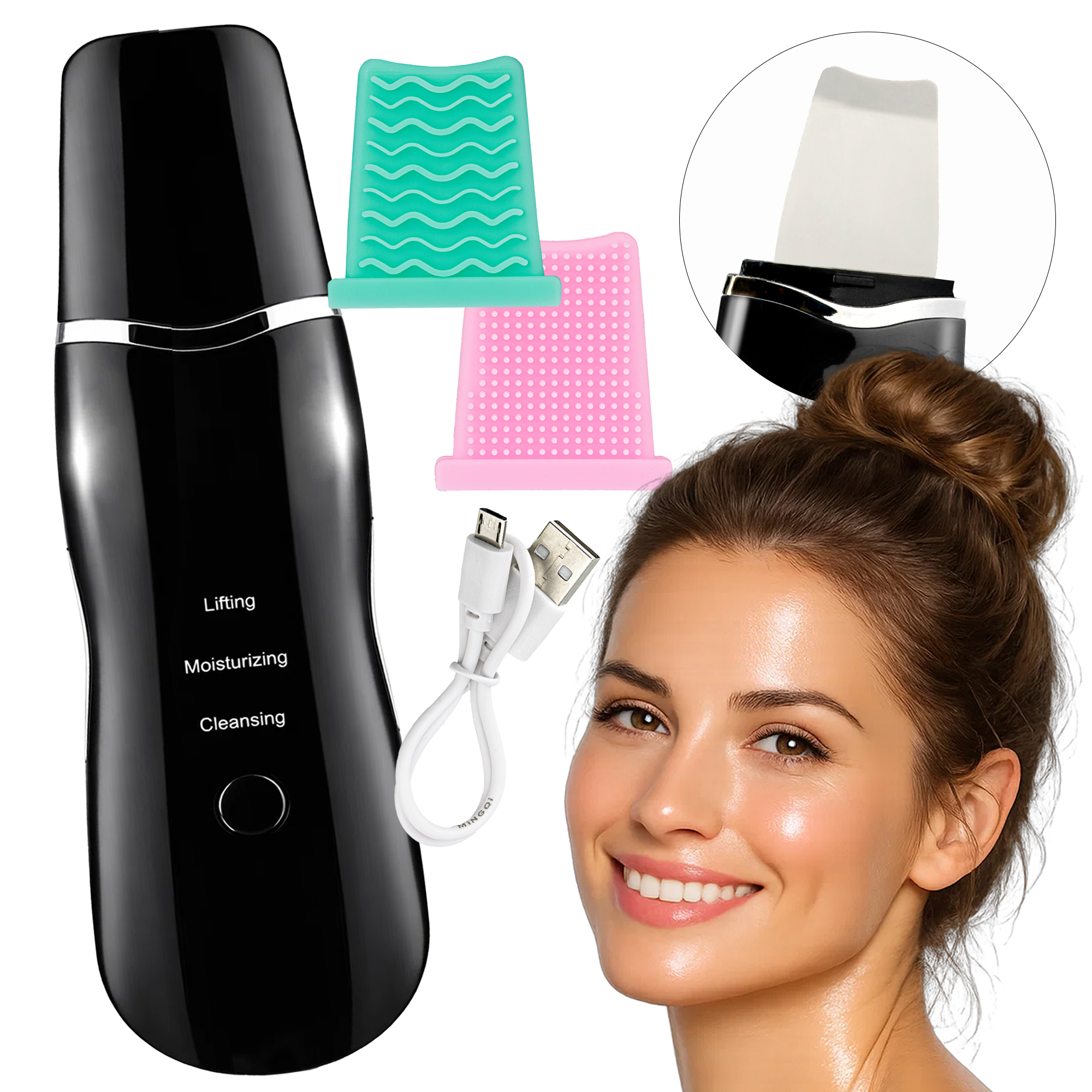 PEELING KAWITACYJNY DO DOMOWEGO OCZYSZCZANIA TWARZY BEZPRZEWODOWY 5W1 ULTRADŹWIĘKOWY 28 KHZ