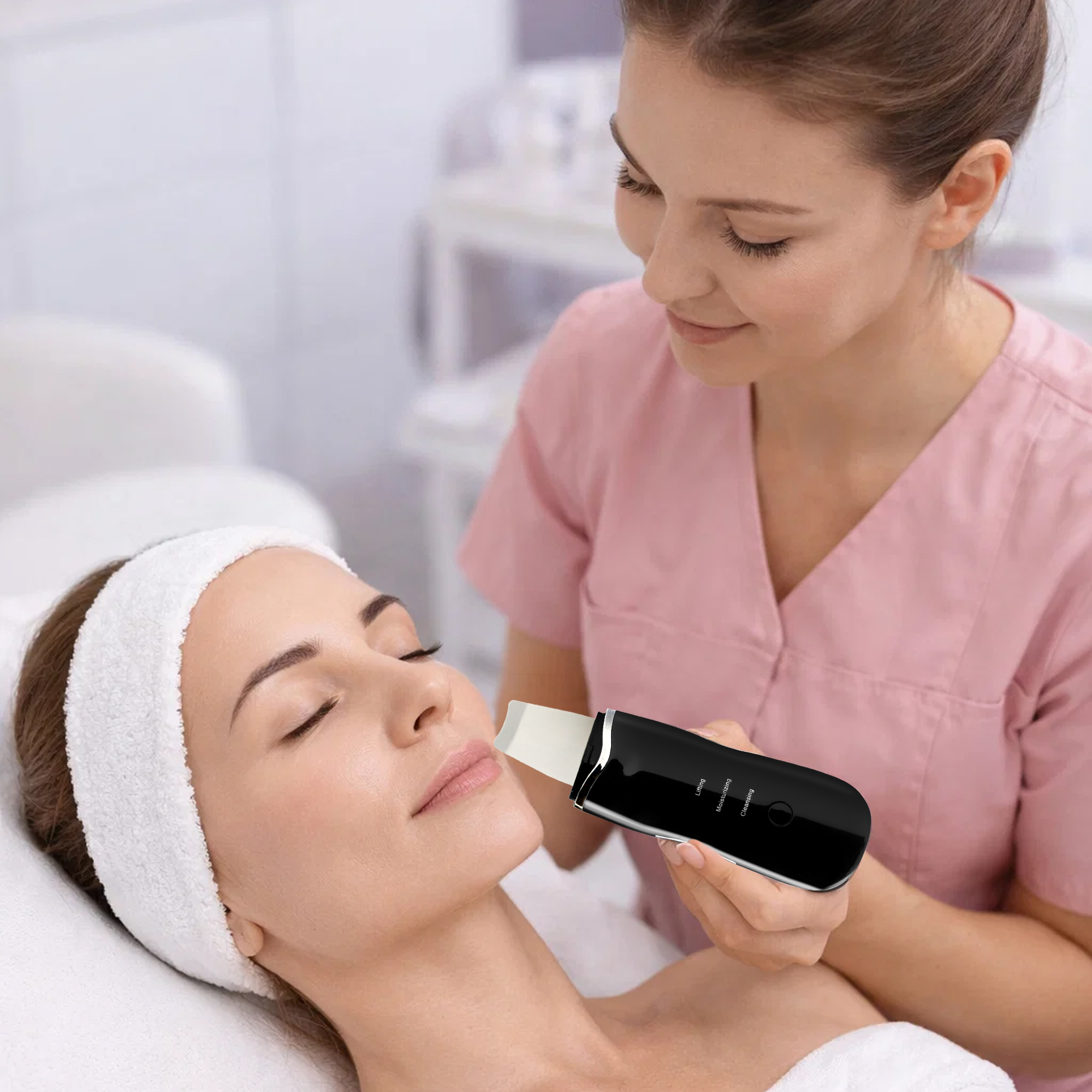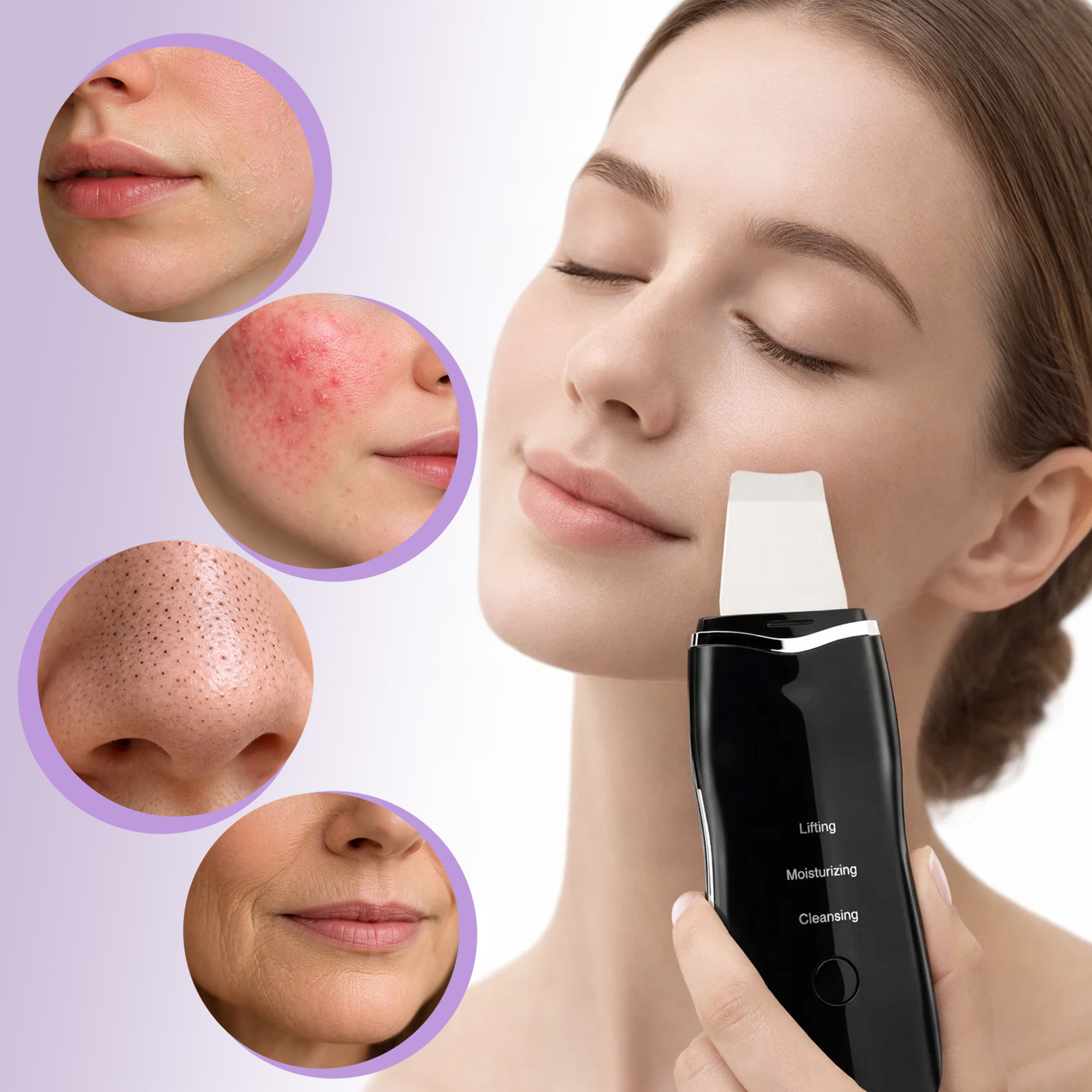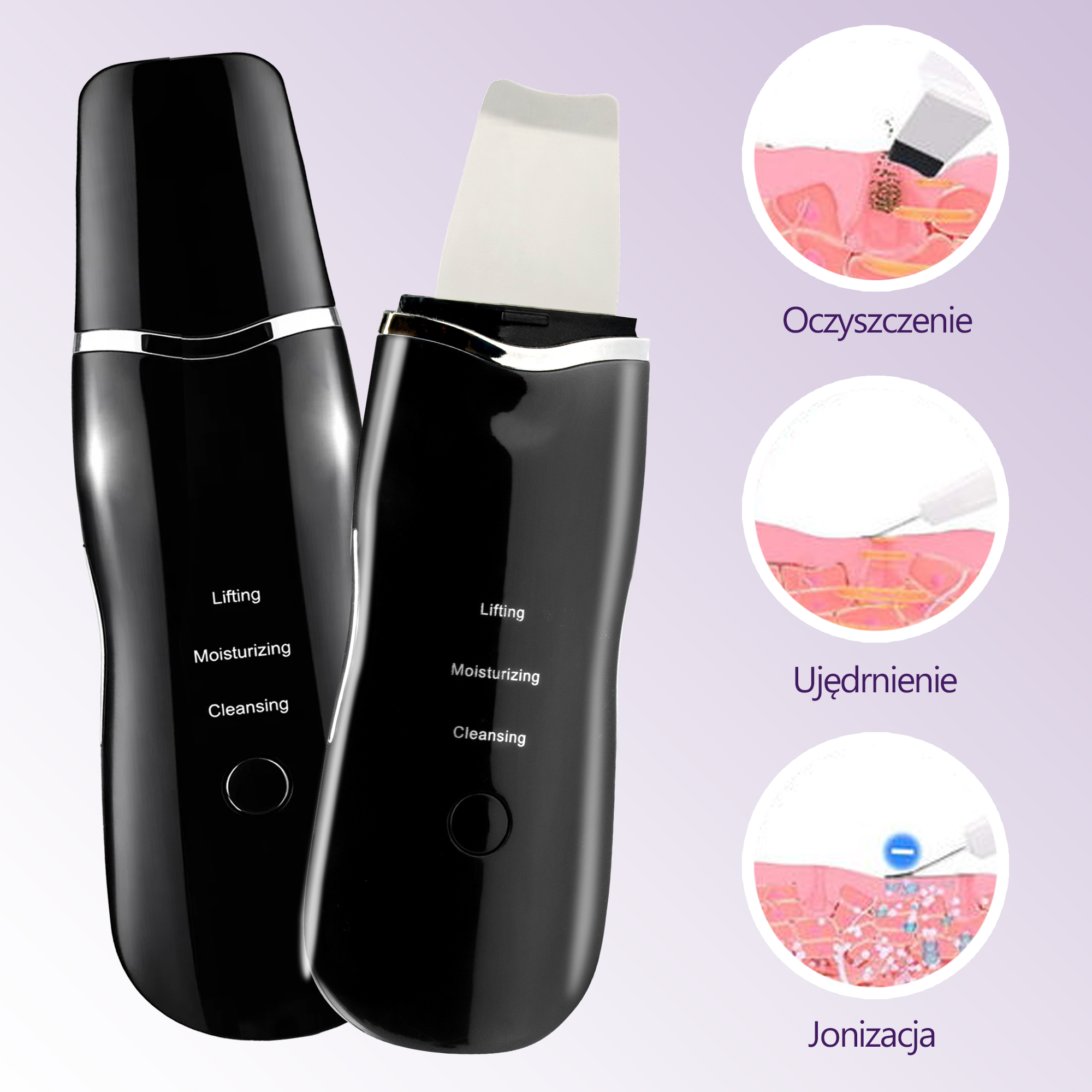 Urządzenie oferuje 5 trybów pracy, dzięki czemu możesz dopasować pielęgnację do potrzeb cery: peeling, oczyszczanie porów, nawilżanie, lifting oraz masaż. Aby uzyskać najlepsze rezultaty, stosuj je na oczyszczonej i zwilżonej skórze, prowadząc końcówkę zgodnie z liniami twarzy.