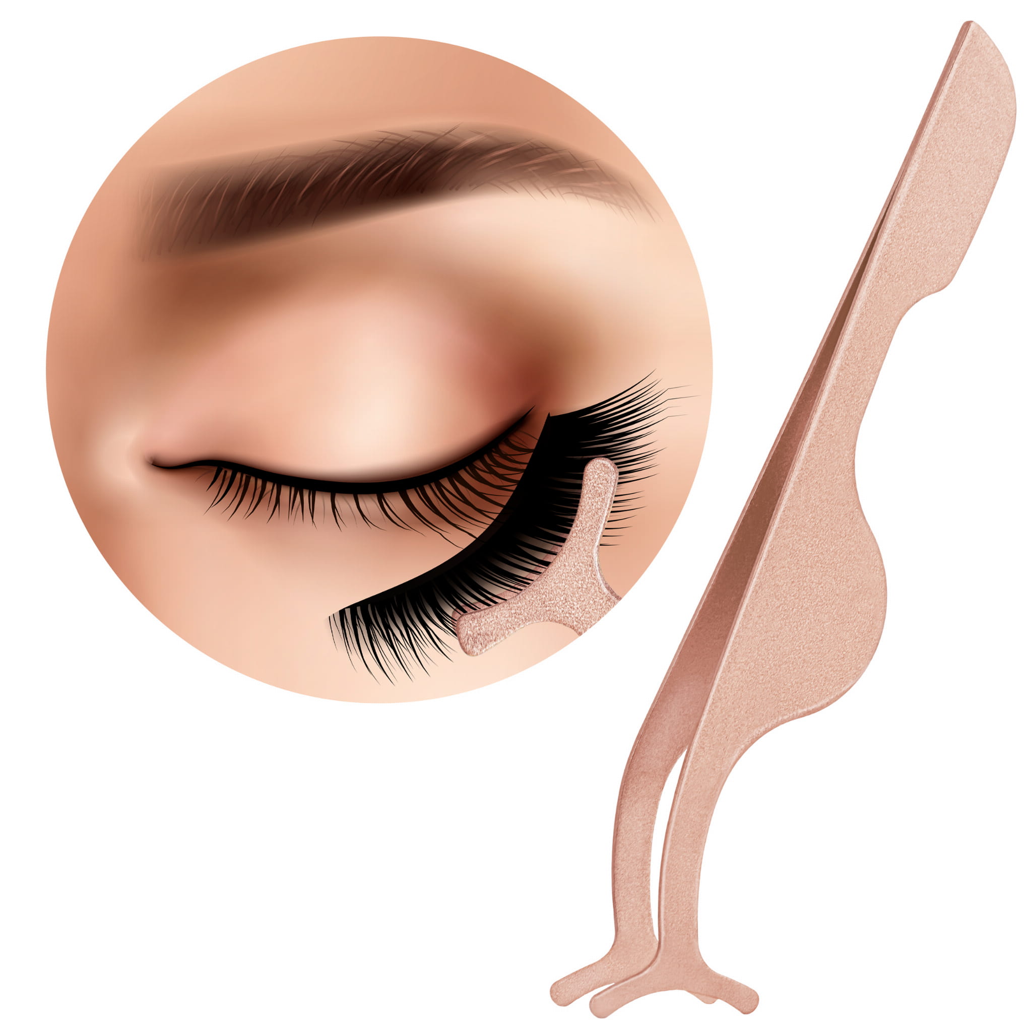 Pęseta aplikator do sztucznych rzęs na pasku Rose Gold