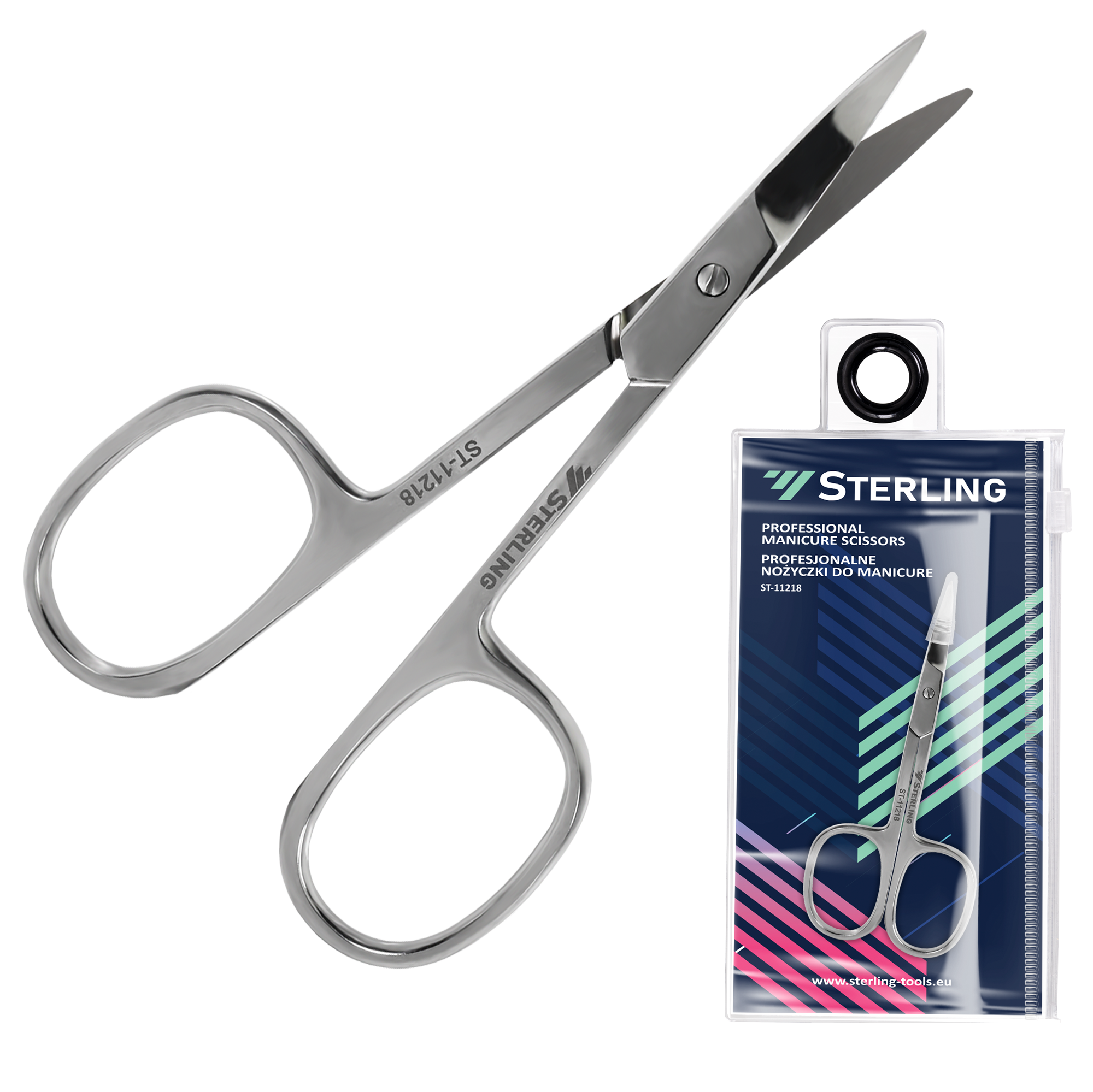 Sterling ST-11218 to wysokiej klasy nożyczki do manicure i pedicure, przeznaczone do precyzyjnego wycinania skórek i skracania paznokci. Wykonane z certyfikowanej, chirurgicznej stali nierdzewnej, gwarantują trwałość, odporność na korozję i możliwość wielokrotnej sterylizacji bez utraty właściwości tnących.