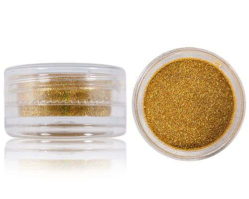 Delikatny i drobny pyłek do stylizacji paznokci przy użyciu żelu lub lakieru hybrydowego. Idealny do wykorzystania również w makijażu lub kosmetyce. Posiada jasny złoty odcień opalizujący na różne kolory. Wymaga zabezpieczenia topem lub żelem nabłyszczającym. Posypany na utwardzony wcześniej lakier bądź żel, nadaje paznokciom połysk oraz piękny, błyszczący się efekt. Pojemność: 3 ml.