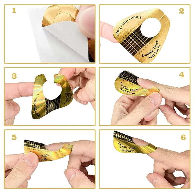 Papierowe, złote szablony pozwalające stworzyć paznokcie w różnym kształcie i długości. To alternatywa do przedłużania paznokci na tipsie wyglądająca bardziej naturalnie i pozwalająca na pracę wieloma różnymi produktami. Szablonów możesz używać do żelu, akrylu, akrylożelu, baz budujących oraz do nadbudowy uszkodzonego paznokcia.