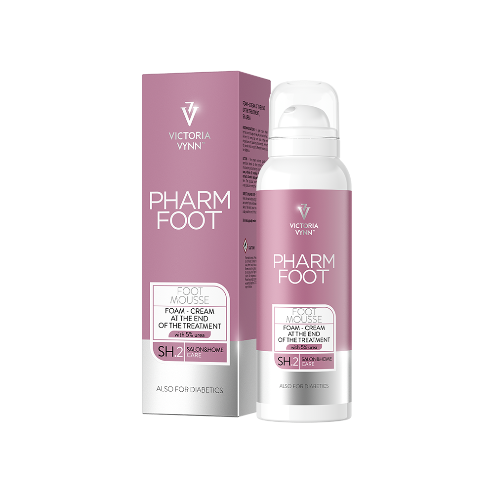 Victoria Vynn Pharm Foot MOUSSE to delikatna pianka-krem zawierająca 5% mocznika, idealna do zakończenia zabiegu pielęgnacyjnego stóp. Dzięki swojemu składowi nawilżającemu i odżywczemu, zapewnia intensywną regenerację skóry stóp, pozostawiając je miękkie i gładkie. Produkt o pojemności 105ml.
