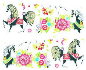 Modne i łatwe w użyciu naklejki o różnorodnych wzorach pozwalają tworzyć niecodzienne i niebanalne zdobienia na paznokciach. Idealne do paznokci naturalnych, żelowych, akrylowych oraz hybryd. Gotowy, wycięty już wzór wystarczy zmoczyć, aby folia zaczęła się odklejać od arkusza i przykleić do paznokcia aplikując go stroną nadruku. Następnie zabezpieczyć naklejkę Wet Lookiem lub Top Coatem. Naklejki umieszczone są w arkuszu o rozmiarze 5 x 6 cm. Każdy arkusz zawiera kolorowe naklejki z koniem.