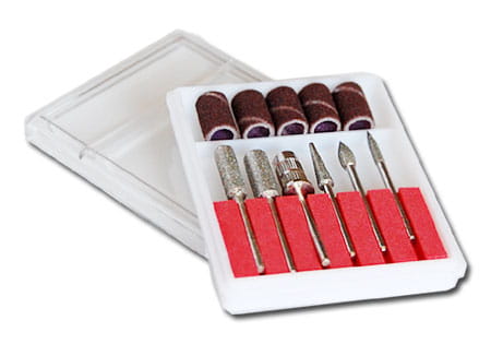 Zestaw podstawowych frezów diamentowy stosowanych w zabiegach manicure oraz pedicure. Wykonane zostały z najwyższej jakości hartowanej stali pokrytej diamentowym nasypem. Trwały materiał zapobiega rdzewieniu i tępieniu się frezów co gwarantuje długotrwałe użytkowanie. Dzięki różnej grubości diamentowych opiłków oraz ich równomiernemu rozmieszczeniu praca z frezami jest niezwykle komfortowa i wydajna.
