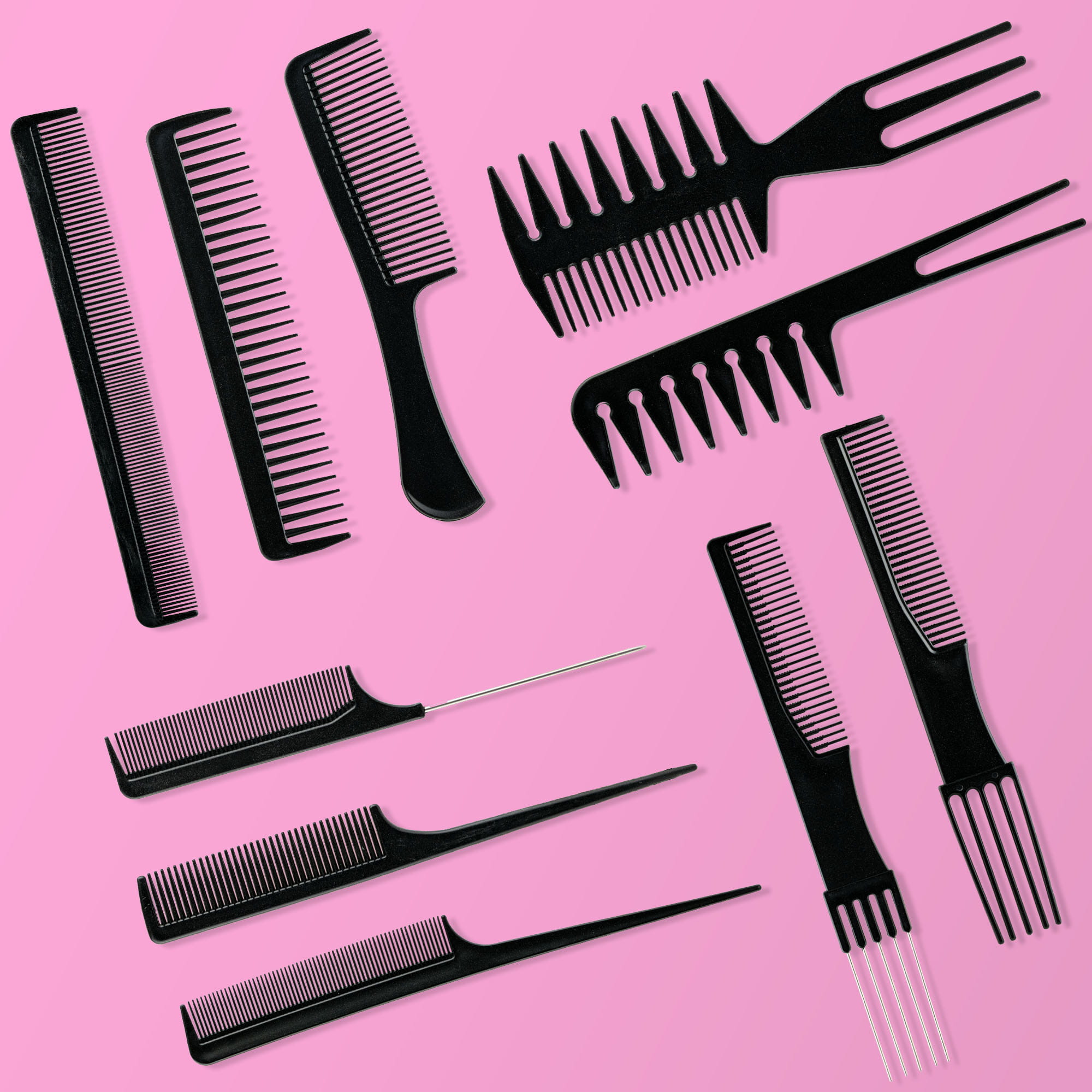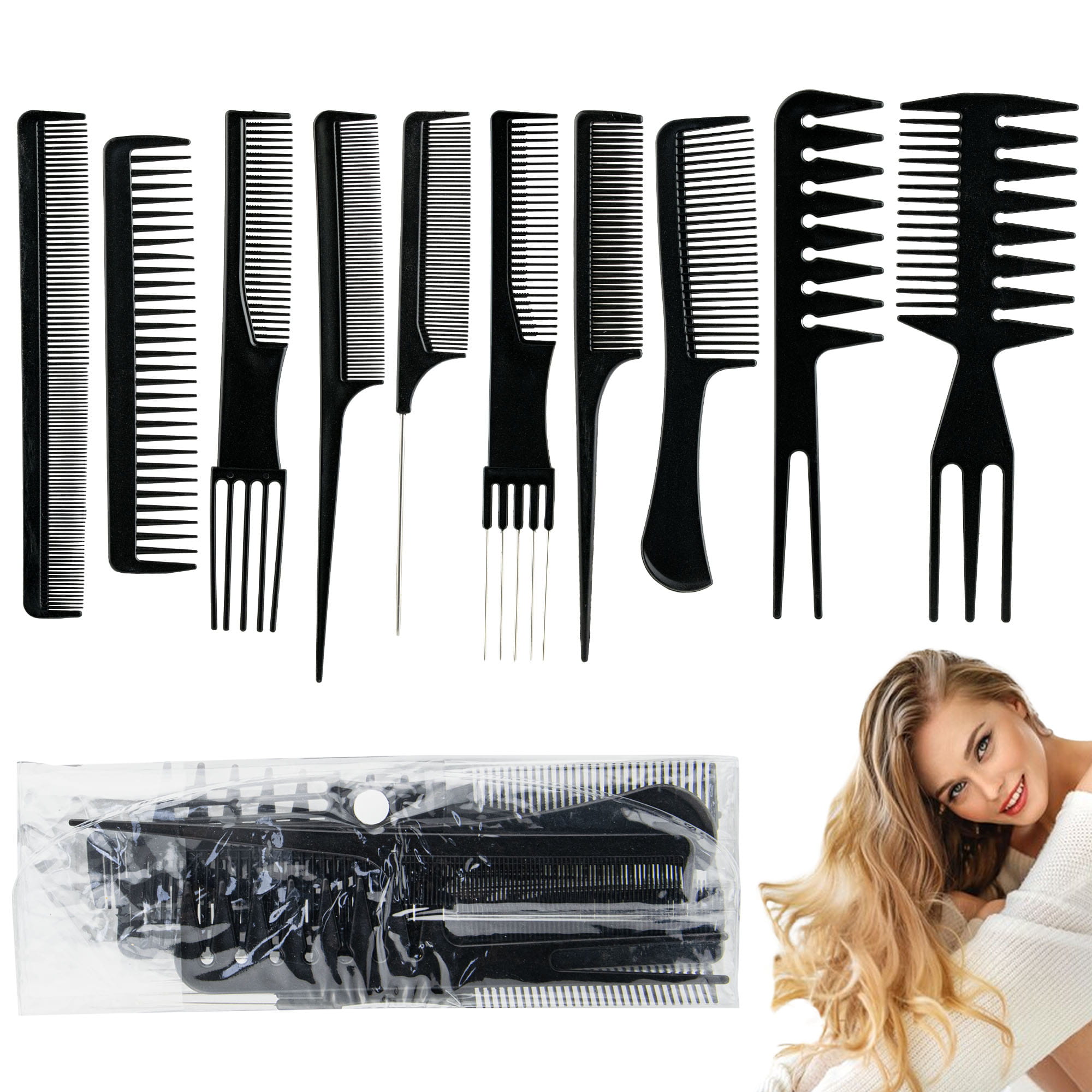 Zestaw grzebieni do rozczesywania i cieniowania włosów składający się z 10 wyspecjalizowanych narzędzi, idealnych zarówno dla profesjonalnych stylistów, jak i do użytku domowego.